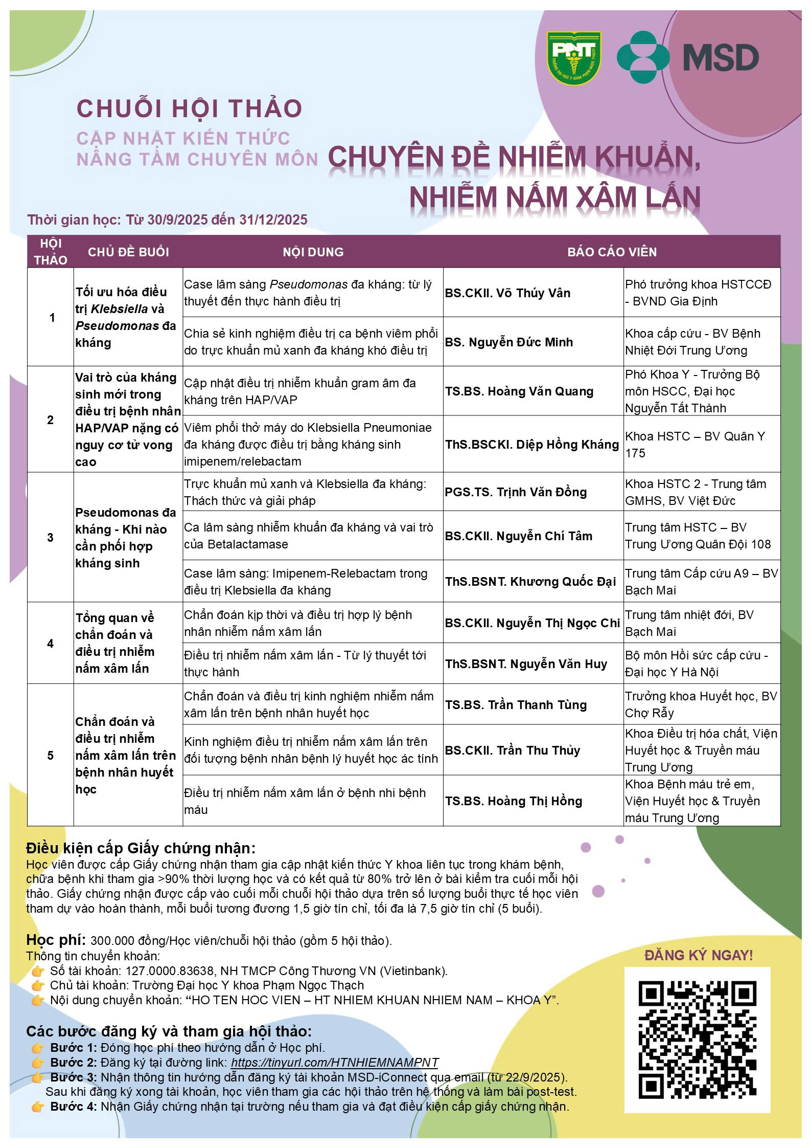 Thông báo Chiêu sinh “Chuỗi hội thảo cập nhật kiến thức y khoa năm 2025”, Buổi 5: “Ứng dụng canxi trong chăm sóc sức khỏe bà bầu và trẻ em: Lợi ích và khuyến nghị”