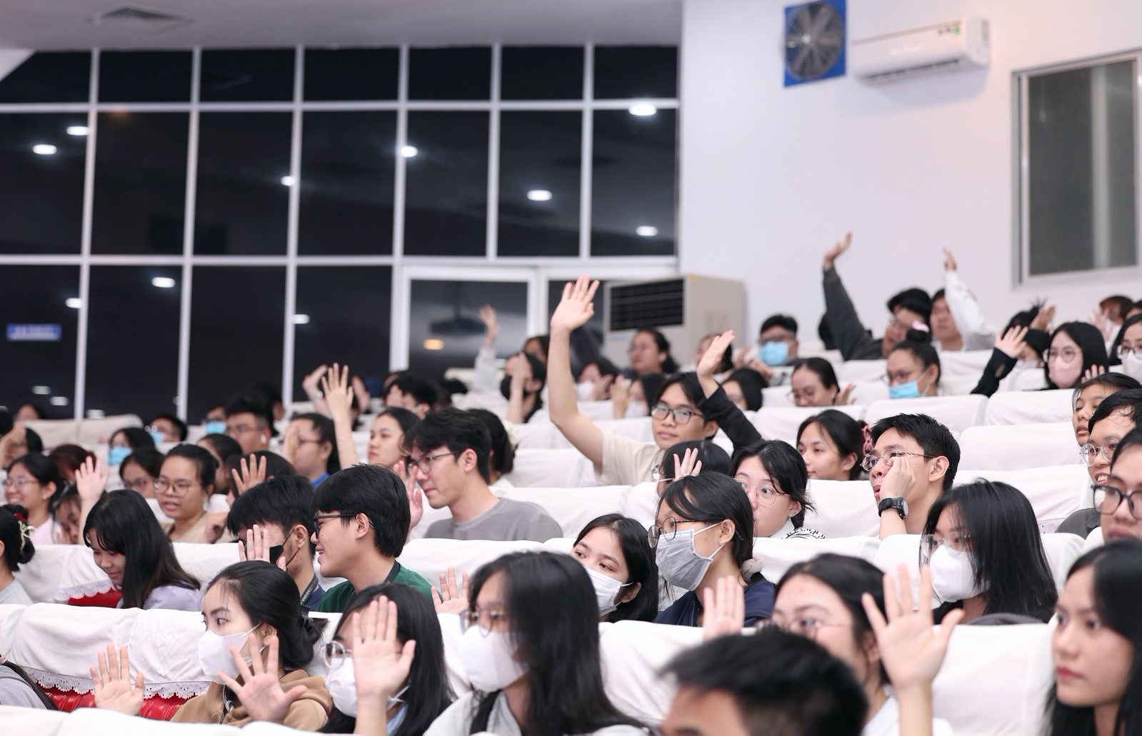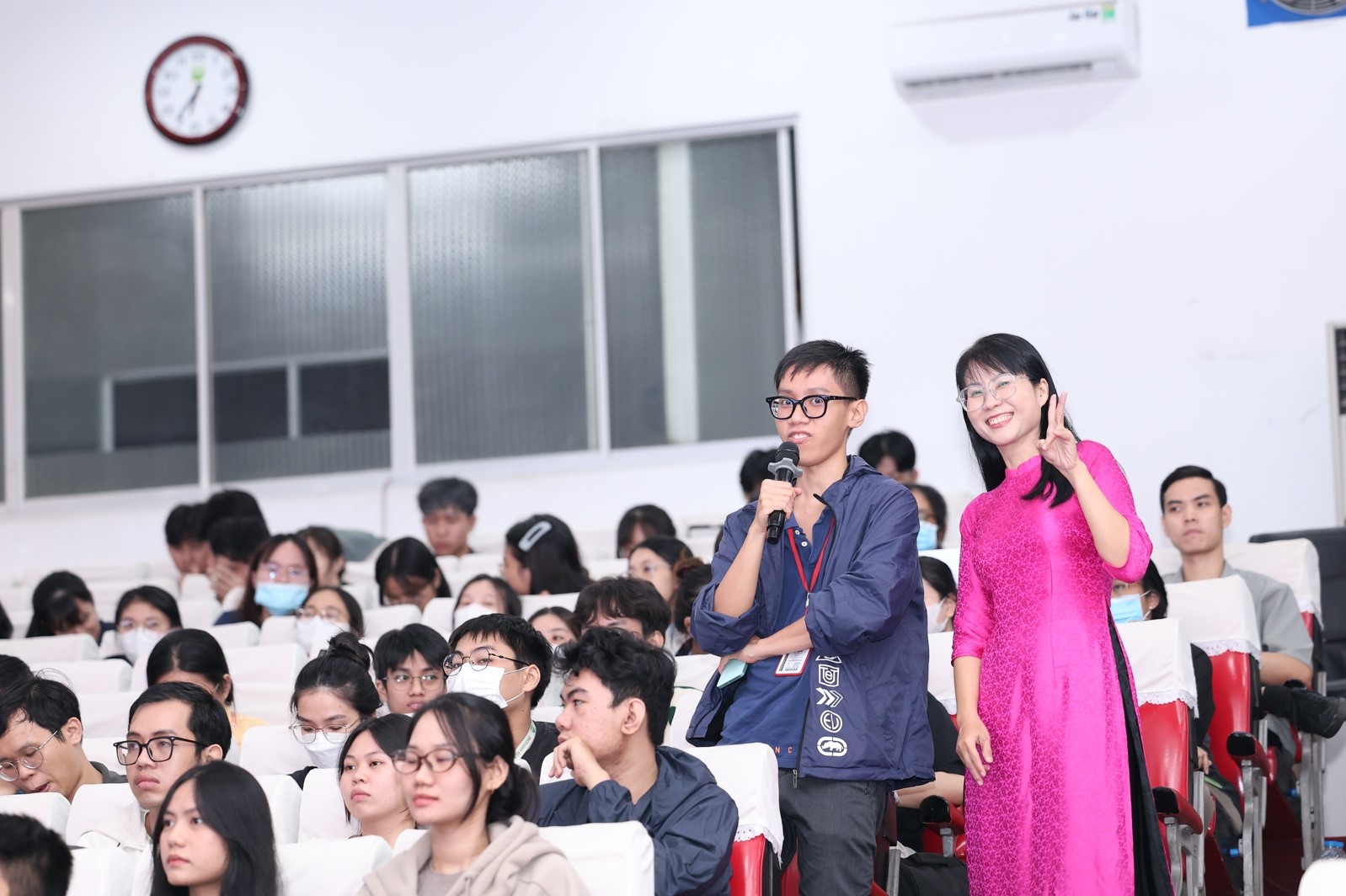 Báo cáo viên giao lưu với sinh viên tham gia chương trình. (Ảnh VPT: cung cấp)