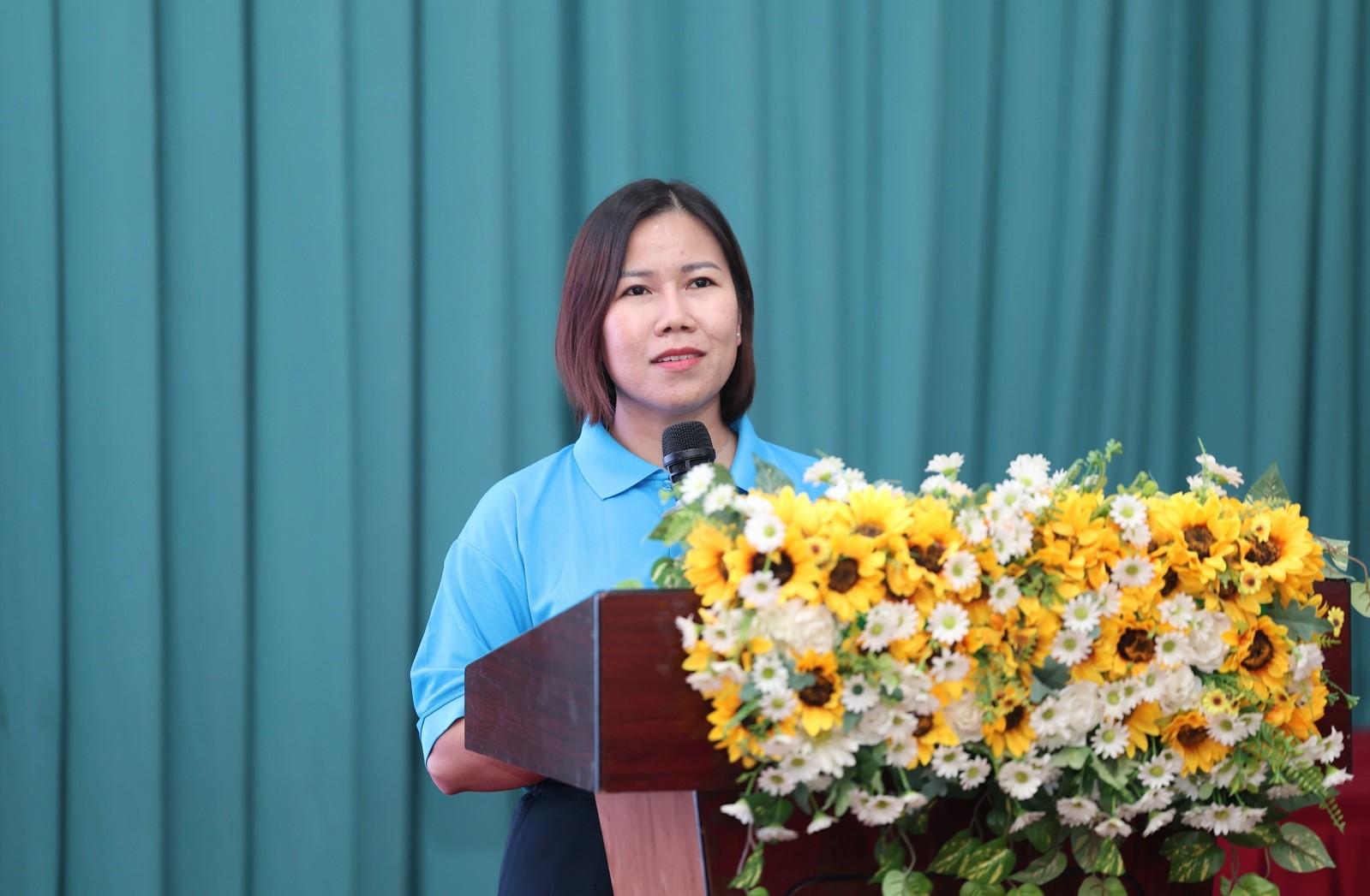 Đồng chí Lê Thị Hiệp – Phó Chủ tịch Công đoàn Trường, đại diện Ban Tổ chức phát biểu khai mạc chương trình. (Ảnh: VPT: cung cấp)