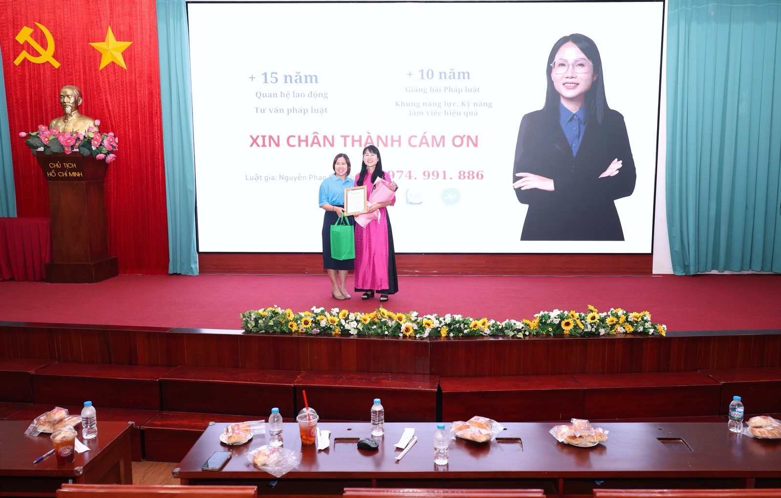 Tại Chương trình, đồng chí Nguyễn Phan Bảo Khuyên nhấn mạnh những điểm chính trong Bộ Luật lao động và những vấn đề phát sinh, kinh nghiệm thường gặp khi thực hiện hợp đồng lao động cho sinh viên mới ra trường sẵn sàng khi bước vào thị trường lao động.