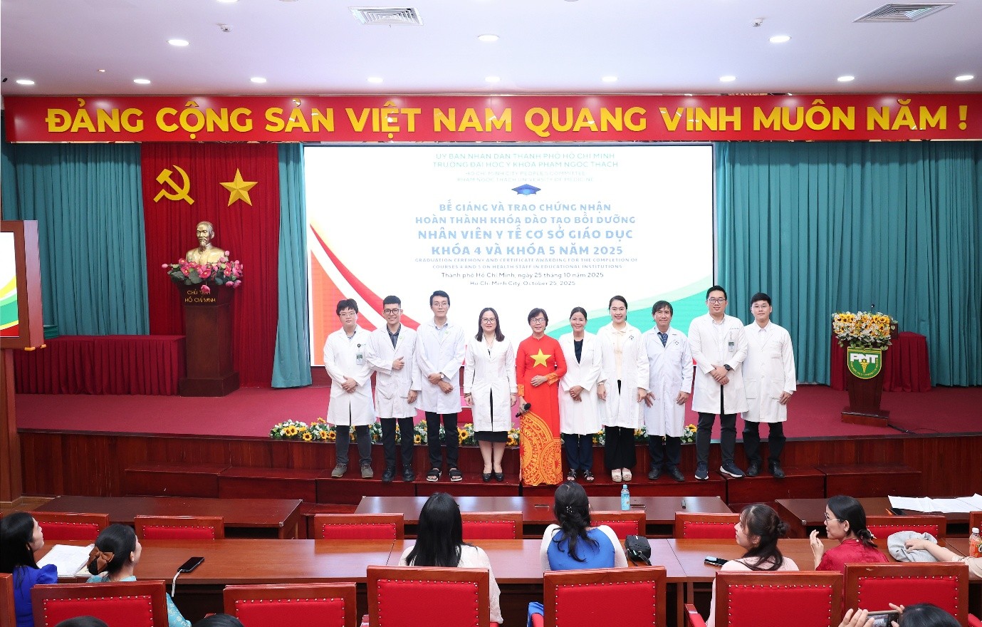 Đội ngũ giảng viên Trường Đại học Y khoa Phạm Ngọc Thạch phụ trách Khóa đào tạo bồi dưỡng nhân viên Y tế cơ sở giáo dục khóa 4 và khóa 5 năm 2025. (Ảnh: VPT cung cấp)