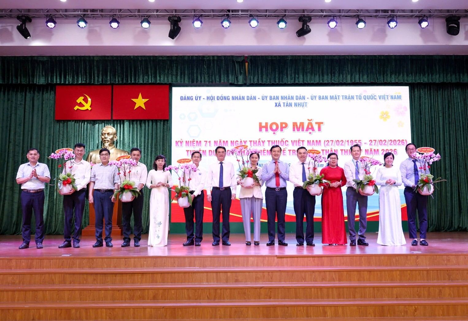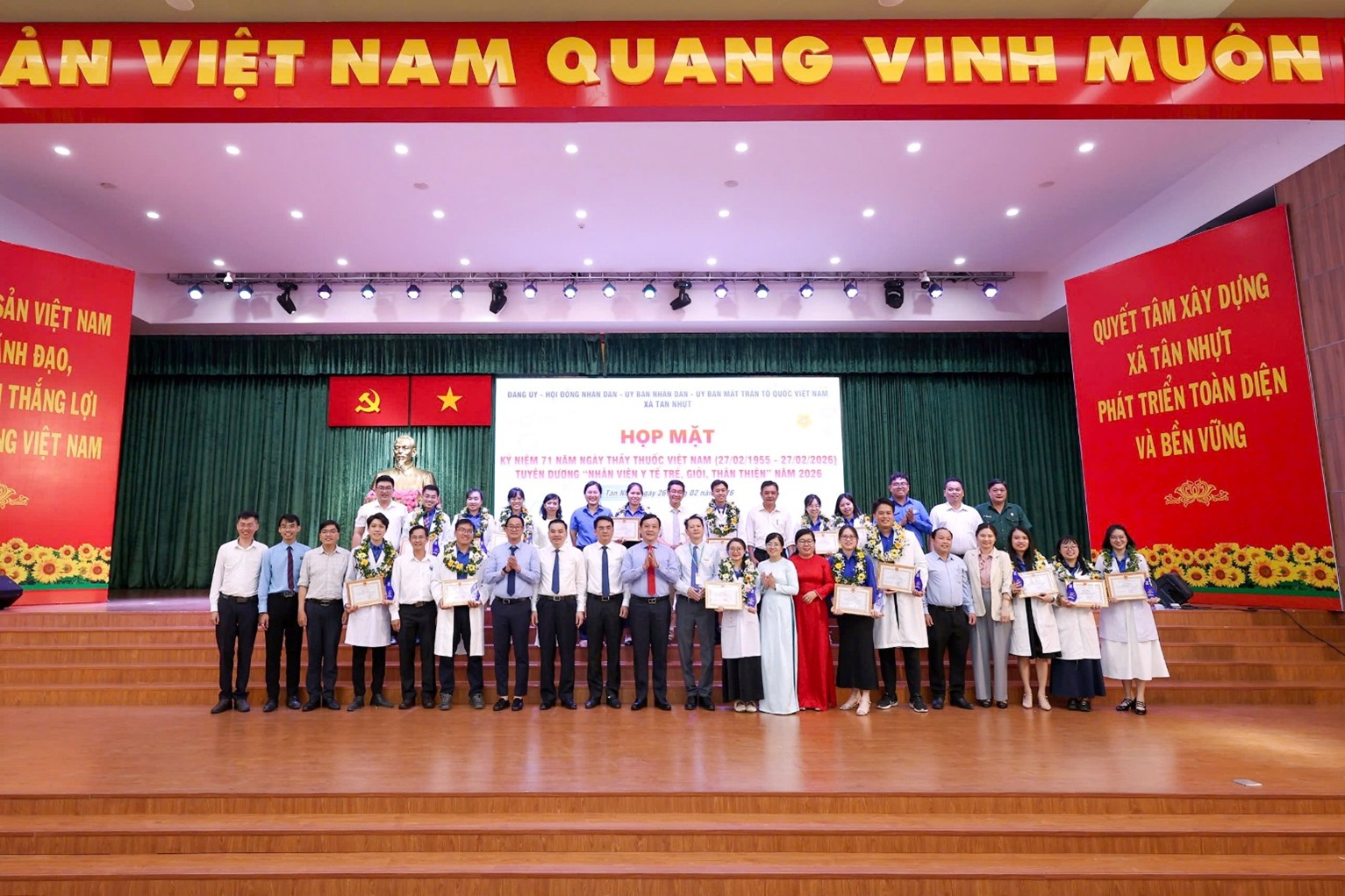 Chiều 26/02/2026, Đảng ủy, HĐND, UBND và Ủy ban MTTQ Việt Nam xã Tân Nhựt đã long trọng tổ chức buổi họp mặt kỷ niệm 71 năm Ngày Thầy thuốc Việt Nam (27/02/1955 - 27/02/2026). Buổi lễ là không gian ấm áp nhằm tri ân những cống hiến thầm lặng của đội ngũ y bác sĩ và các đơn vị y tế toạ lạc trên địa bàn.