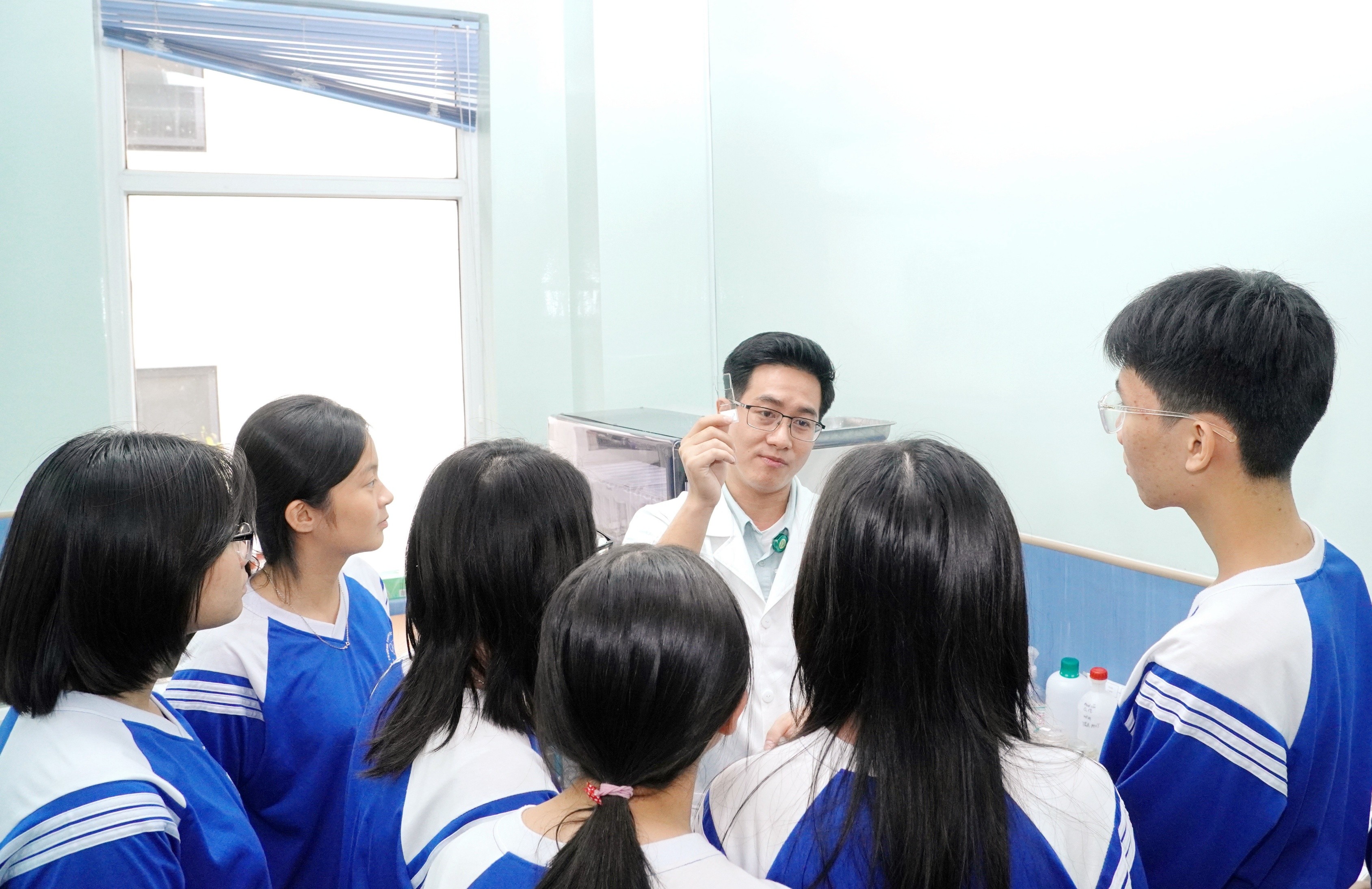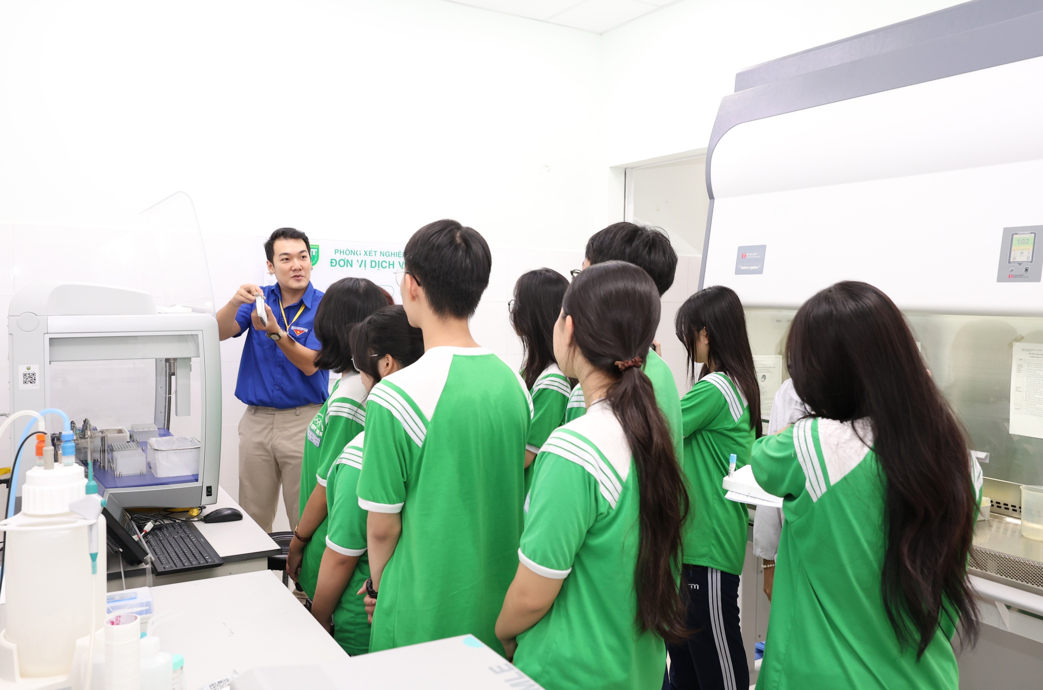 Các em Học sinh khối 10 Trường THPT Lê Quý Đôn TP. HCM tham quan, trải nghiệm tại Trung tâm Xét nghiệm và Nghiên cứu Y sinh chương trình "Open Campus 2025" (Ảnh: VPT cung cấp)