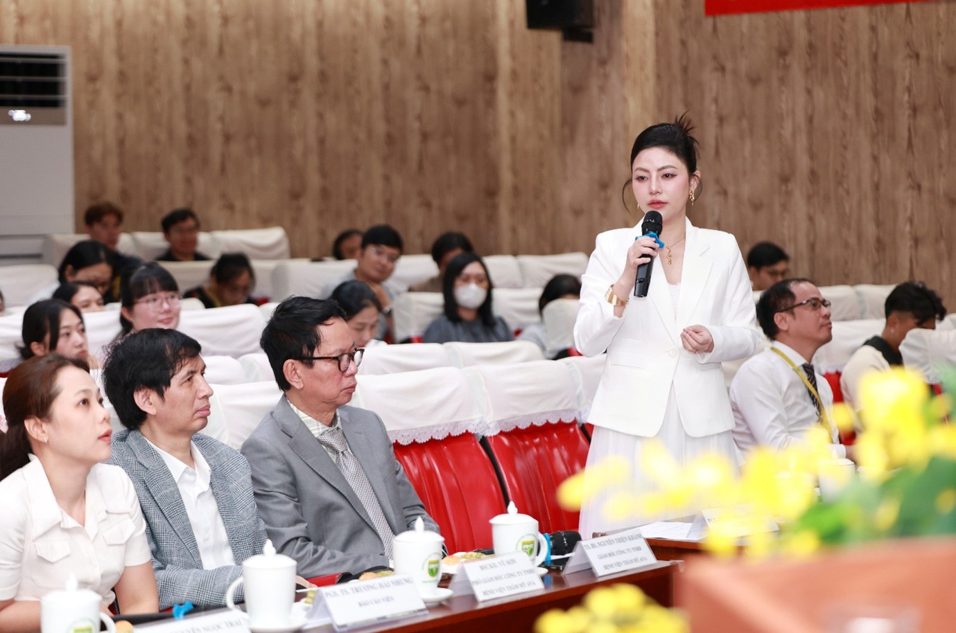Về phía khách mời & Doanh nghiệp: PGS.TS. Trương Hải Nhung - Trưởng khoa Sinh học - Công nghệ Sinh học, Trường ĐH Khoa học tự nhiên - ĐHQG.TPHCM; TS.BS. Trần Nguyên Ánh Tú - Trưởng khoa Da liễu - Miễn dịch dị ứng, Bệnh viện Thống Nhất; TS.BS. Nguyễn Thiện Khánh - Giám đốc Công ty TNHH Bệnh viện thẩm mỹ AVA; BS.CKII Vũ Sơn - Phó Giám đốc Công ty TNHH Bệnh viện thẩm mỹ AVA; TS.BS. Mai Văn Điển - Giám đốc Bệnh viện An Sinh.