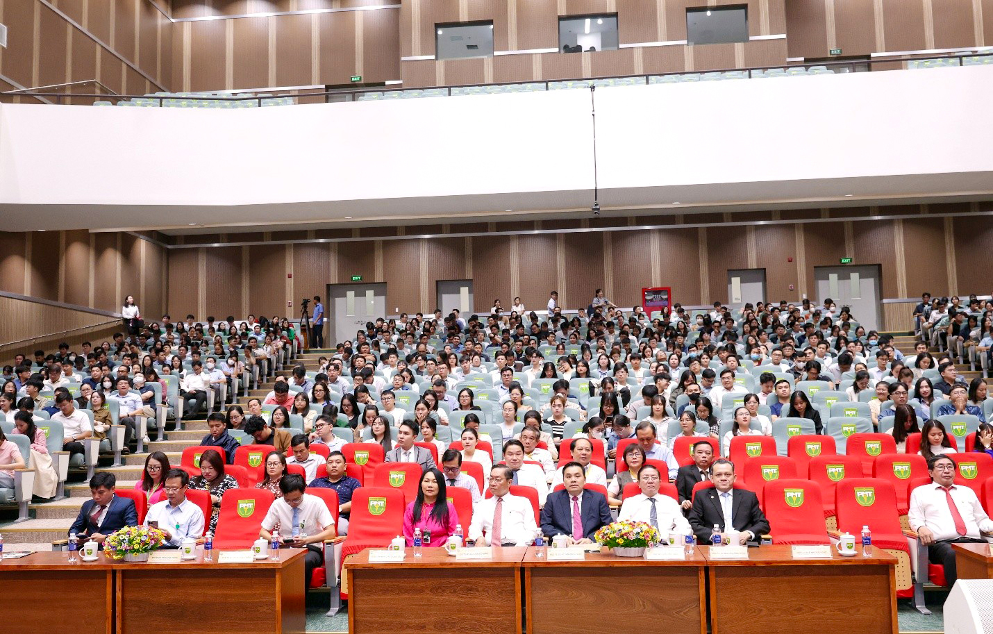 Quý đại biểu, Lãnh đạo Trường, Quý thầy cô cùng tân học viên tham dự buổi Lễ Khai giảng Sau Đại học năm học 2025-2026 tại Trụ sở Tân Nhựt - Trường Đại học Y khoa Phạm Ngọc Thạch. (Ảnh VPT cung cấp)
