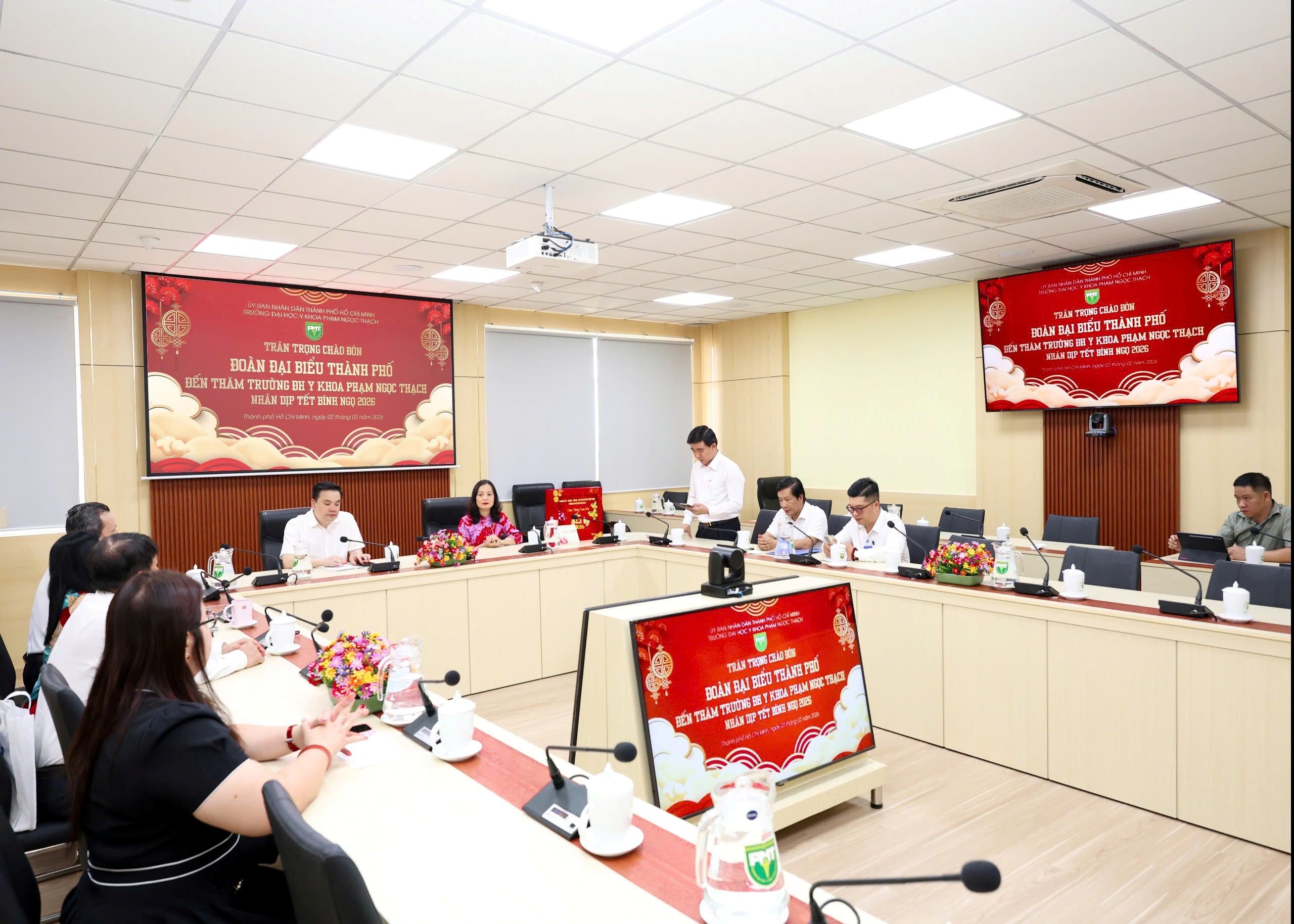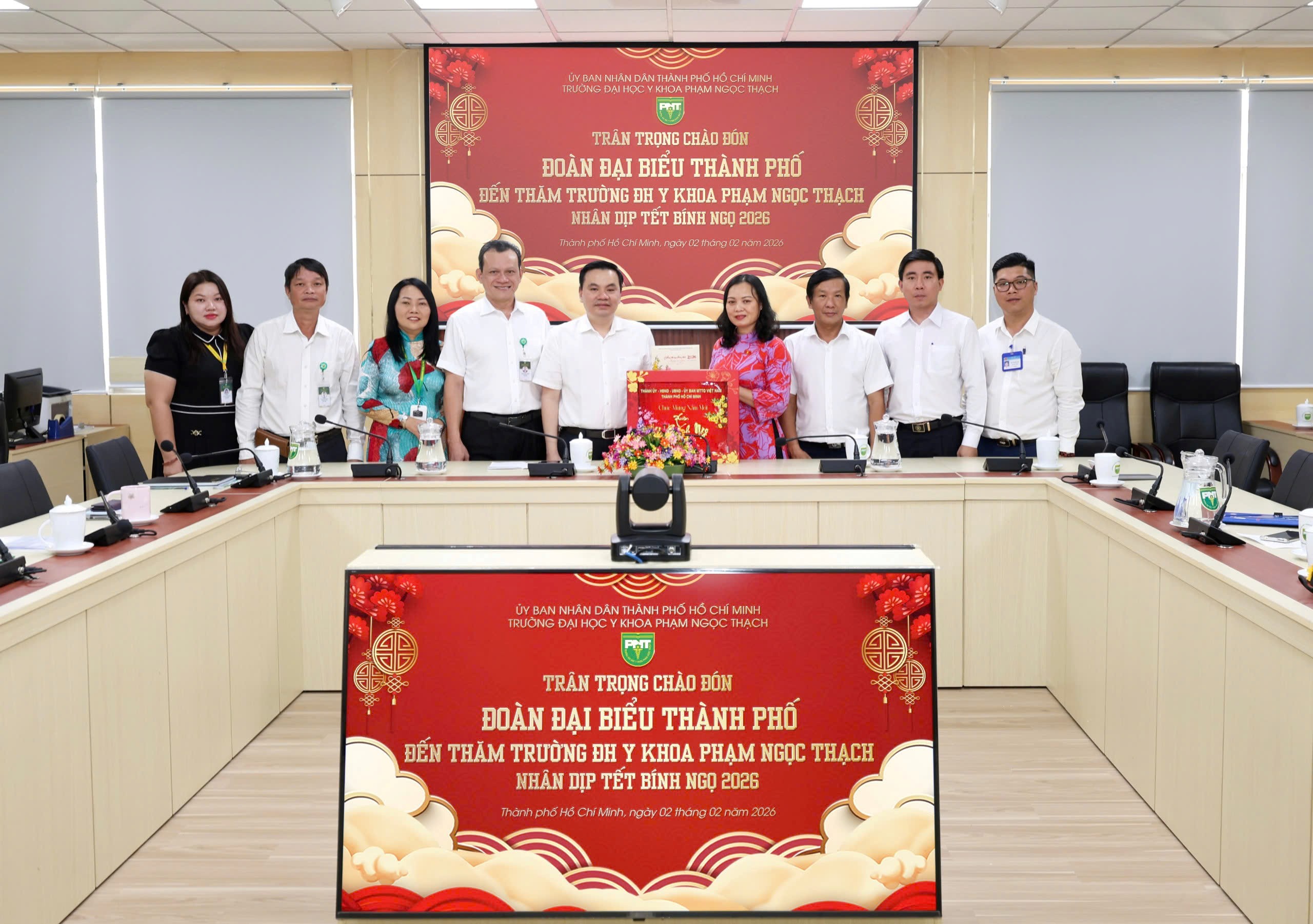 Chiều ngày 02/02/2026, trong không khí hân hoan đón chào mùa Xuân mới, Trường Đại học Y khoa Phạm Ngọc Thạch (PNTU) vô cùng vinh dự được đón Đoàn Đại biểu Thành phố (Đoàn số 51) do Bà Huỳnh Thị Phúc làm Trưởng đoàn đến thăm và chúc Tết. Hoạt động nằm trong khuôn khổ Kế hoạch số 35/KH-UBND của UBND Thành phố.