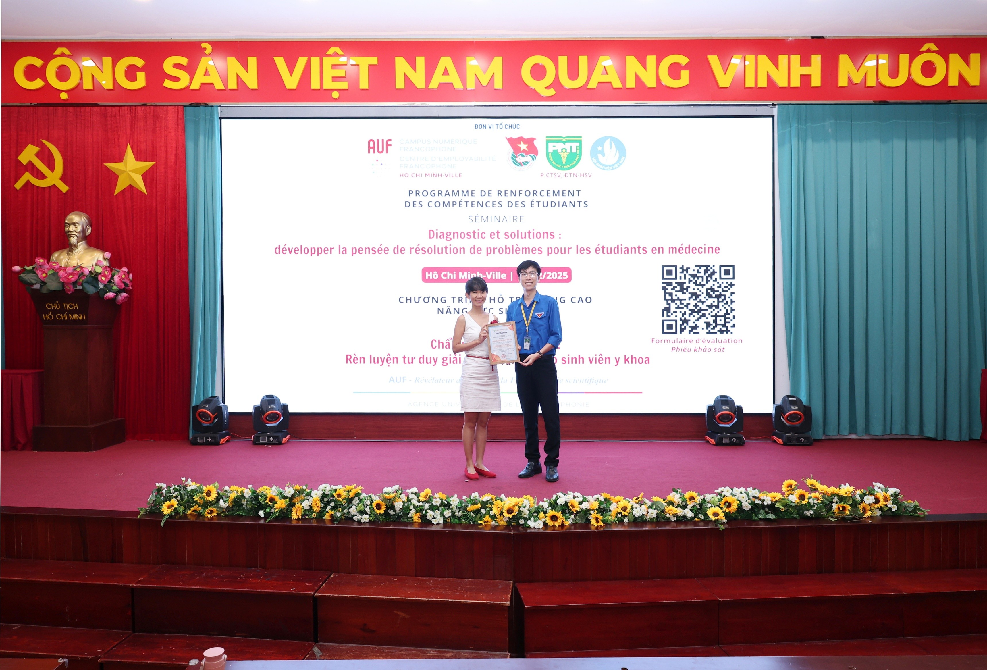Chương trình “Chẩn đoán và giải pháp: Rèn luyện tư duy giải quyết vấn đề sinh viên y khoa” do Phòng Công tác Sinh viên phối hợp với Đoàn Thanh niên - Hội sinh viên và Tổ chức Đại học Pháp ngữ (AUF) tổ chức. (Ảnh: VPT cung cấp)