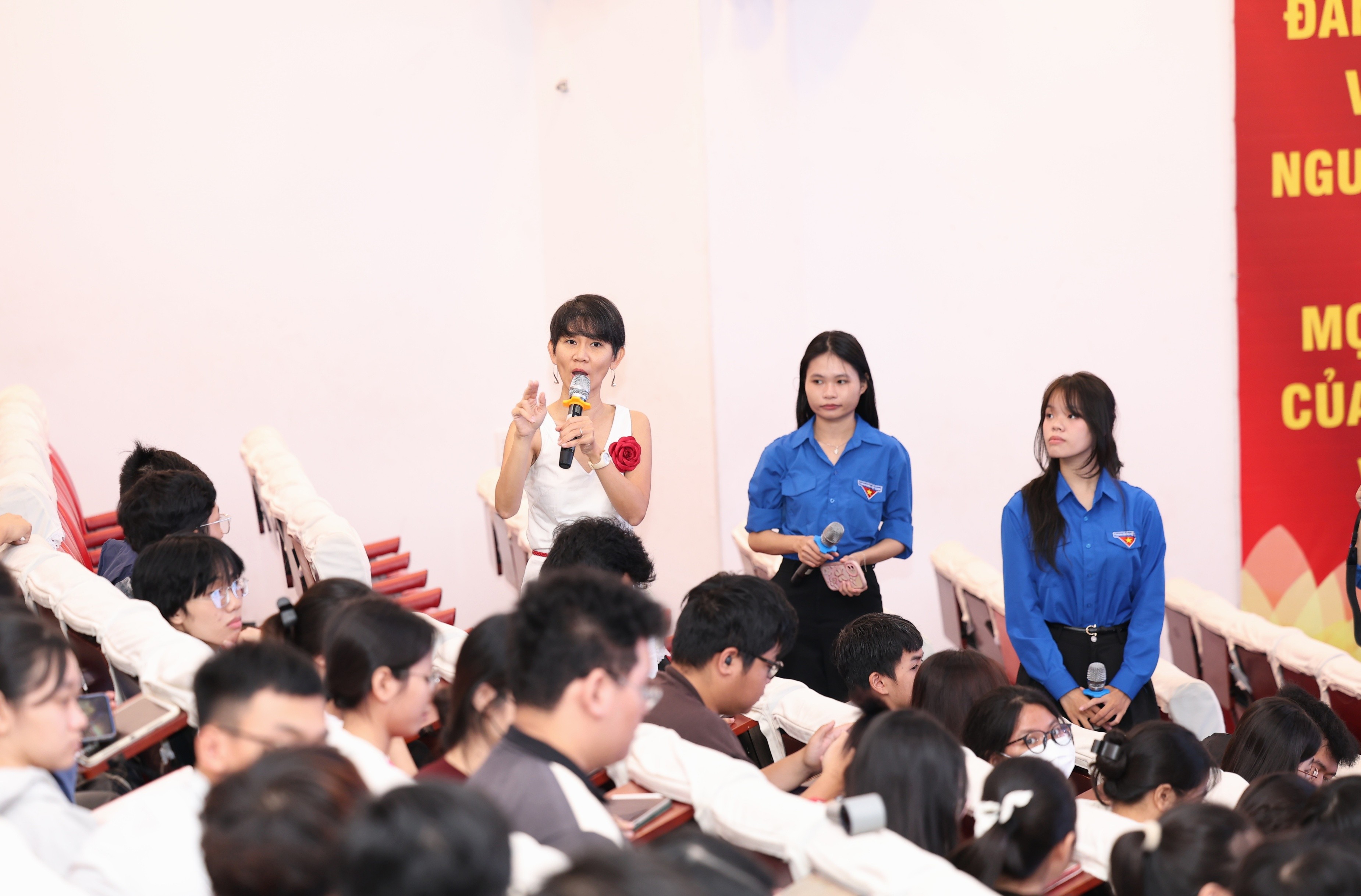 Chương trình do Phòng Công tác Sinh viên phối hợp với Đoàn Thanh niên - Hội sinh viên và Tổ chức Đại học Pháp ngữ (AUF) tổ chức, trở thành điểm hẹn học thuật nơi sinh viên không chỉ “nghe - ghi - nhớ”, mà còn được tư duy, trao đổi và phản biện để nhìn vấn đề đa chiều hơn.