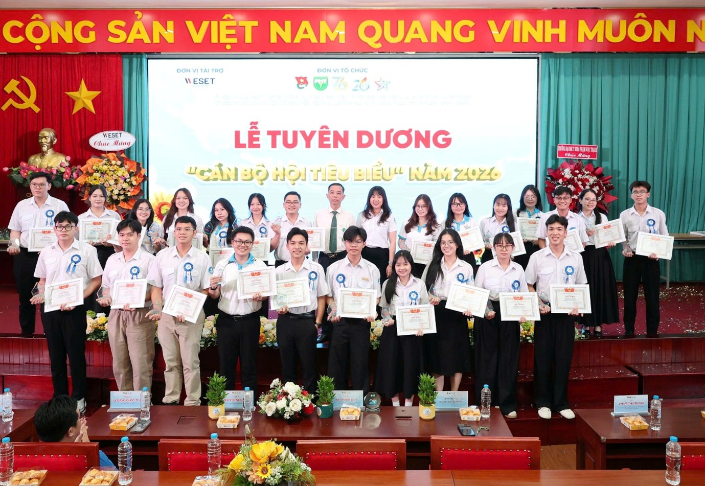 Cùng với đó là 70 Sinh viên 5 Tốt cấp Trường và 65 Cán bộ Hội tiêu biểu năm 2026. Sự cống hiến của các bạn chính là mảnh ghép quan trọng khiến bức tranh hoạt động sinh viên PNTU thêm phần sôi nổi và rực rỡ.