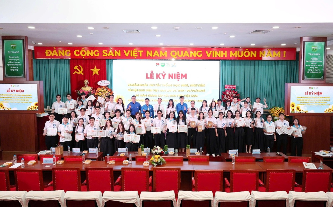 Hội Sinh viên PNTU chúc mừng 20 năm thành lập Hội Sinh viên Việt Nam - Trường Đại học Y khoa Phạm Ngọc Thạch (2006-2026). (Ảnh: VPT)