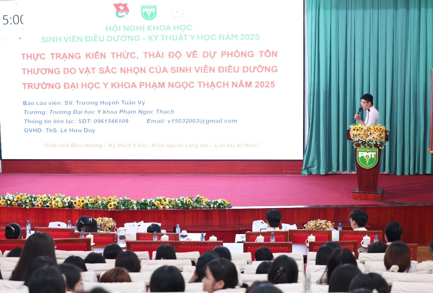 Toàn cảnh Hội nghị Khoa học Sinh viên Điều dưỡng - Kỹ thuật Y học năm 2025 được tổ chức Trường Đại học Y khoa Phạm Ngọc Thạch. (Ảnh: VPT cung cấp)