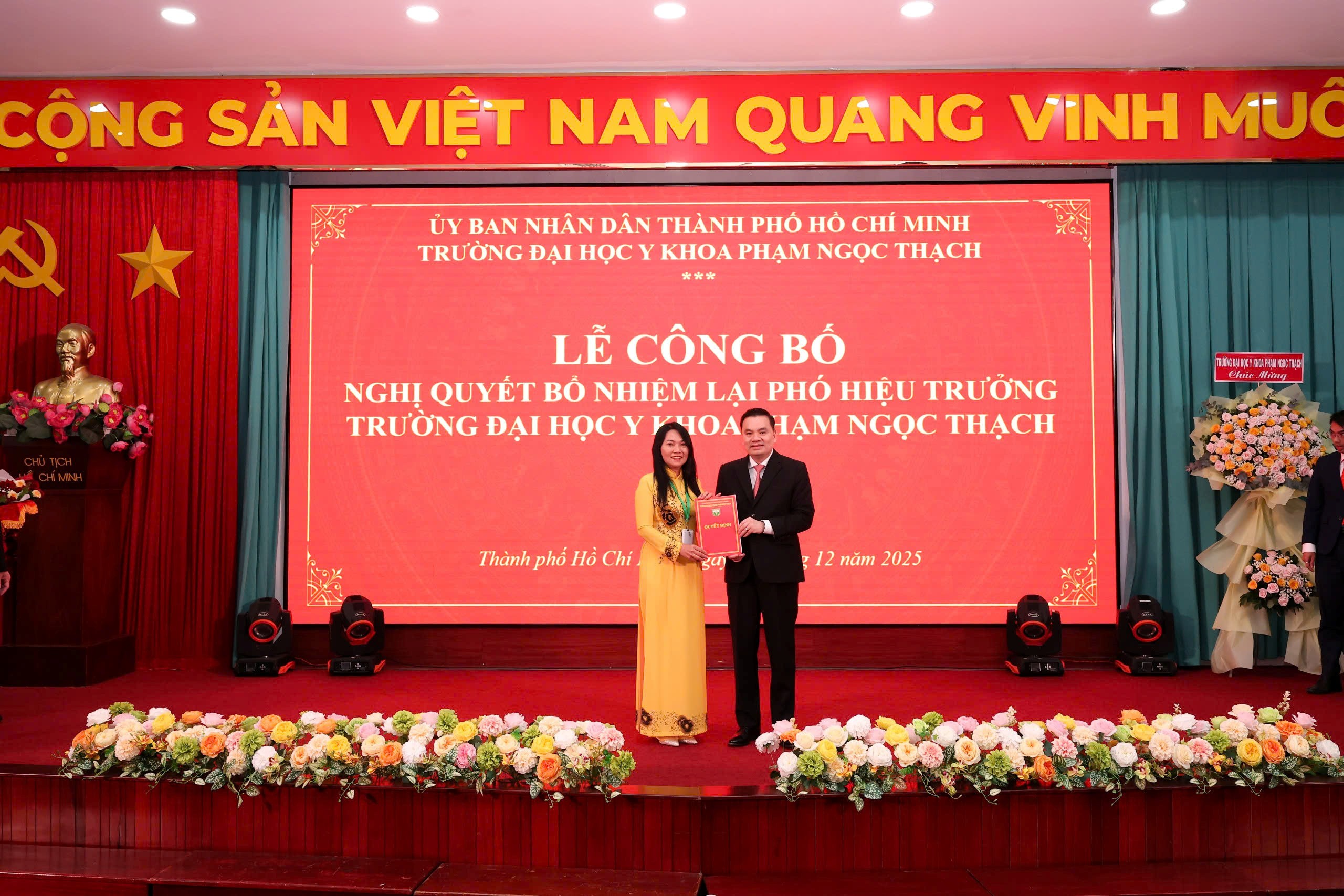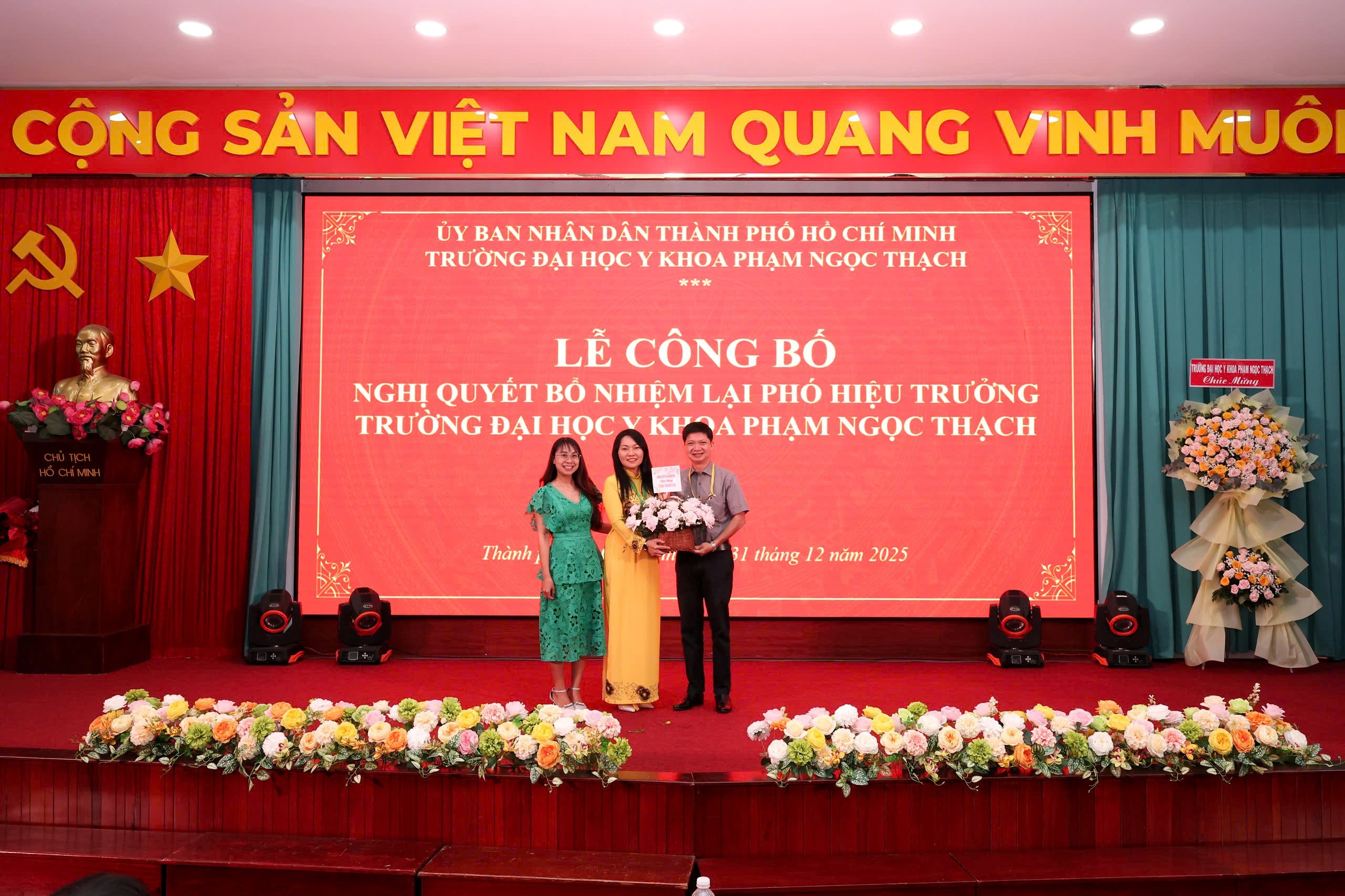 Hòa trong không khí trang trọng của buổi Lễ công bố Nghị quyết, Trường Đại học Y khoa Phạm Ngọc Thạch vui mừng thông báo: TS.BS Phan Nguyễn Thanh Vân đã chính thức được bổ nhiệm lại giữ chức vụ Phó Hiệu trưởng Nhà trường với nhiệm kỳ 05 năm.