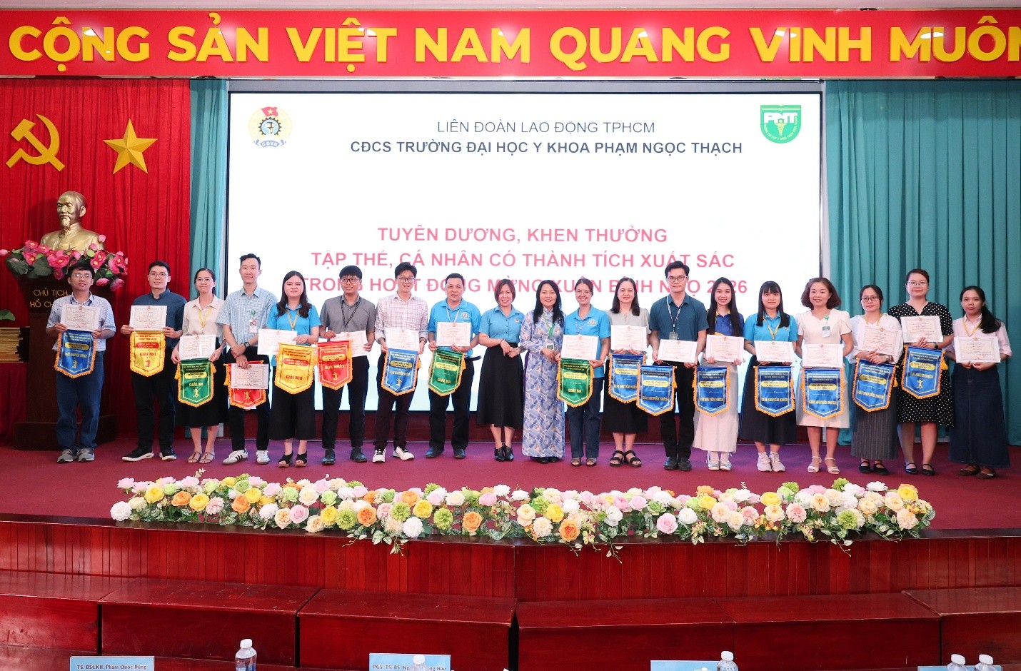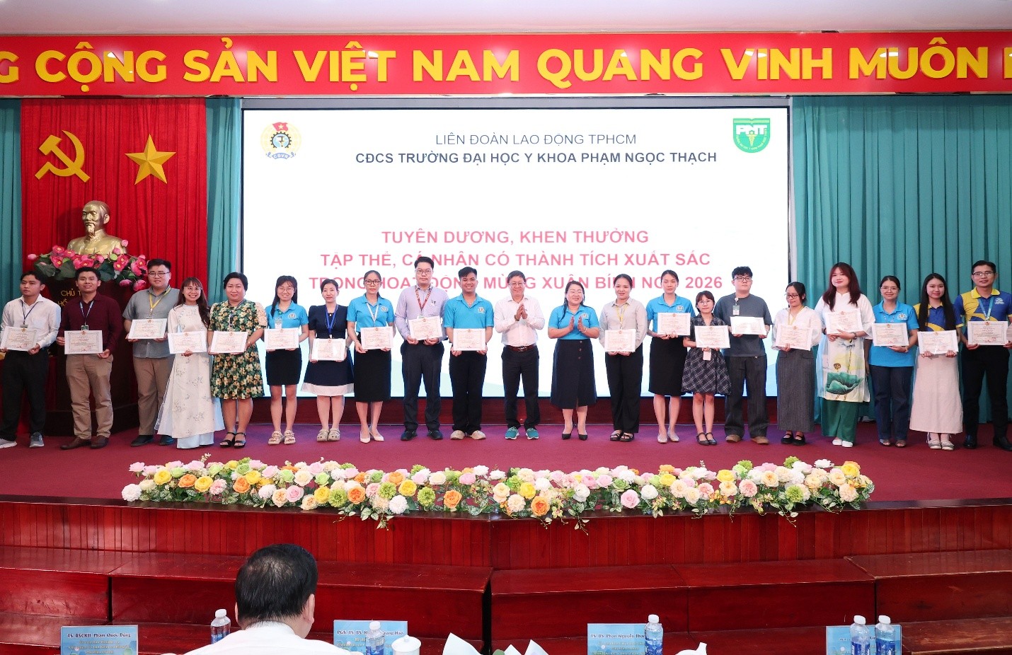Tuyên dương, khen thưởng Tập thể nhận giấy khen của Công đoàn cơ sở và các Tập thể, cá nhân có thành tích xuất sắc trong hoạt động mừng Xuân Bính Ngọ 2026. (Ảnh: VPT)