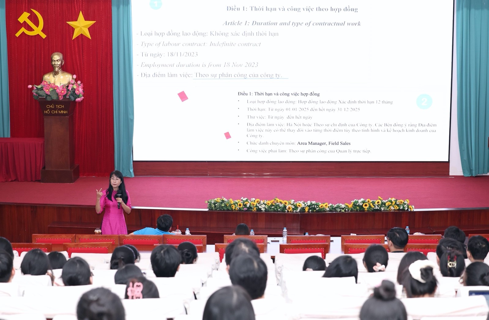 Tại Chương trình, đồng chí Nguyễn Phan Bảo Khuyên nhấn mạnh những điểm chính trong Bộ Luật lao động và những vấn đề phát sinh, kinh nghiệm thường gặp khi thực hiện hợp đồng lao động cho sinh viên mới ra trường sẵn sàng khi bước vào thị trường lao động.