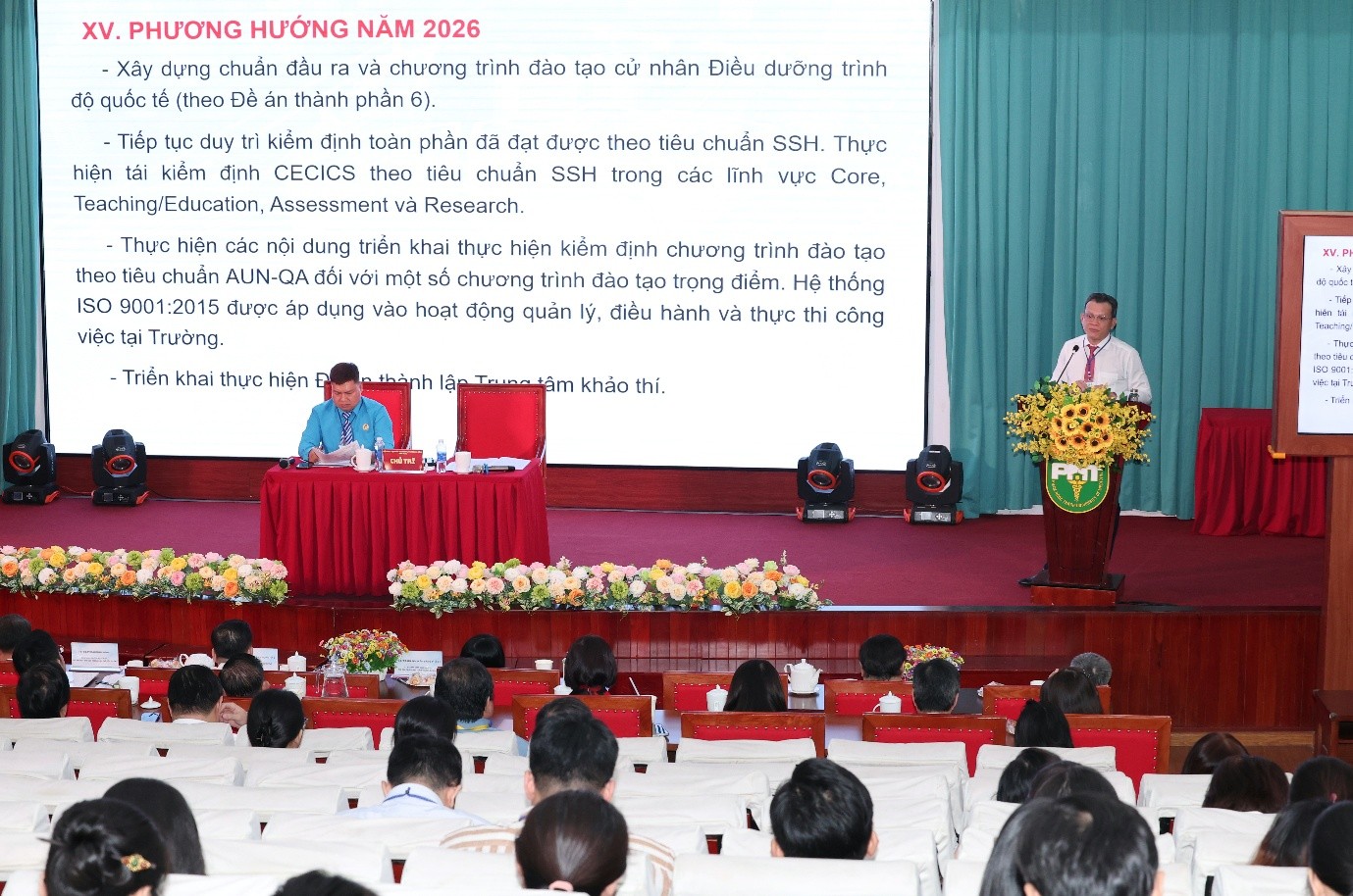 Với tinh thần thẳng thắn và dân chủ, Hội nghị đã đi sâu thảo luận các nội dung trọng tâm từ công tác điều hành, chính sách đến quản lý tài chính. Những báo cáo chi tiết không chỉ phản ánh bức tranh hoạt động toàn diện của Nhà trường trong năm qua mà còn khẳng định sự minh bạch, hiệu quả trong mọi hoạt động.