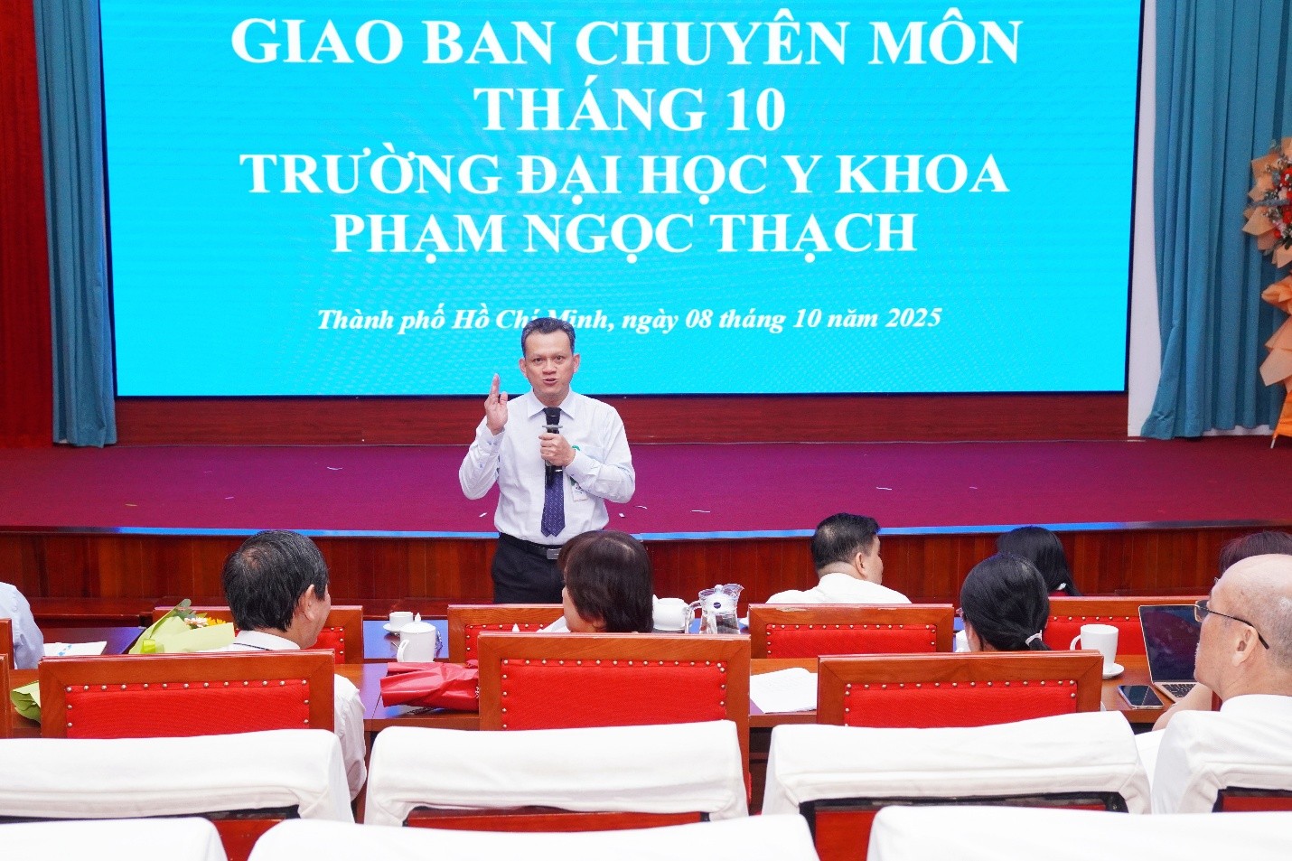 Giao ban chuyên môn tháng 10/2025 không chỉ là dịp để tổng kết các hoạt động trong thời gian qua và triển khai những nhiệm vụ trọng tâm sắp tới, mà còn là dấu mốc khẳng định tinh thần đổi mới trong công tác tổ chức, quản trị và phát triển nguồn nhân lực chất lượng cao của Trường Đại học Y khoa Phạm Ngọc Thạch – ngôi trường tiên phong trong đào tạo y khoa theo định hướng thực hành của Thành phố Hồ Chí Minh.