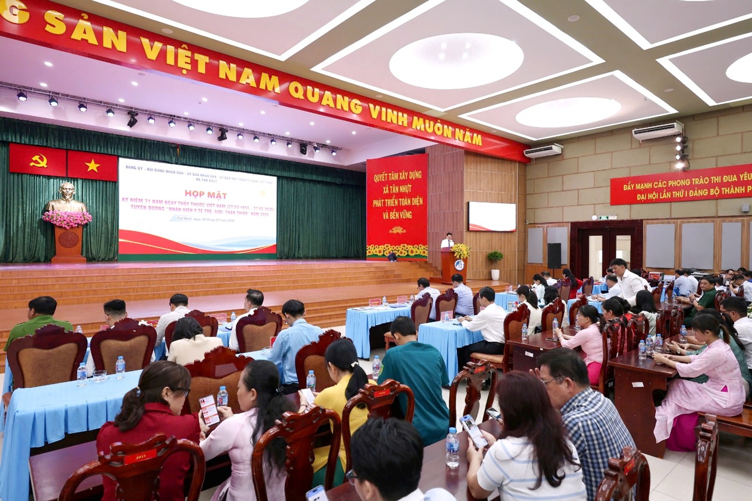 Chiều 26/02/2026, Đảng ủy, HĐND, UBND và Ủy ban MTTQ Việt Nam xã Tân Nhựt đã long trọng tổ chức buổi họp mặt kỷ niệm 71 năm Ngày Thầy thuốc Việt Nam (27/02/1955 - 27/02/2026). Buổi lễ là không gian ấm áp nhằm tri ân những cống hiến thầm lặng của đội ngũ y bác sĩ và các đơn vị y tế toạ lạc trên địa bàn.