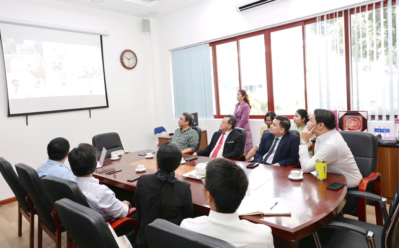 Ảnh 1: Buổi gặp mặt giữa Lãnh đạo Trường Đại học Y khoa Phạm Ngọc Thạch và đại diện Tập đoàn Y tế Phương Châu.