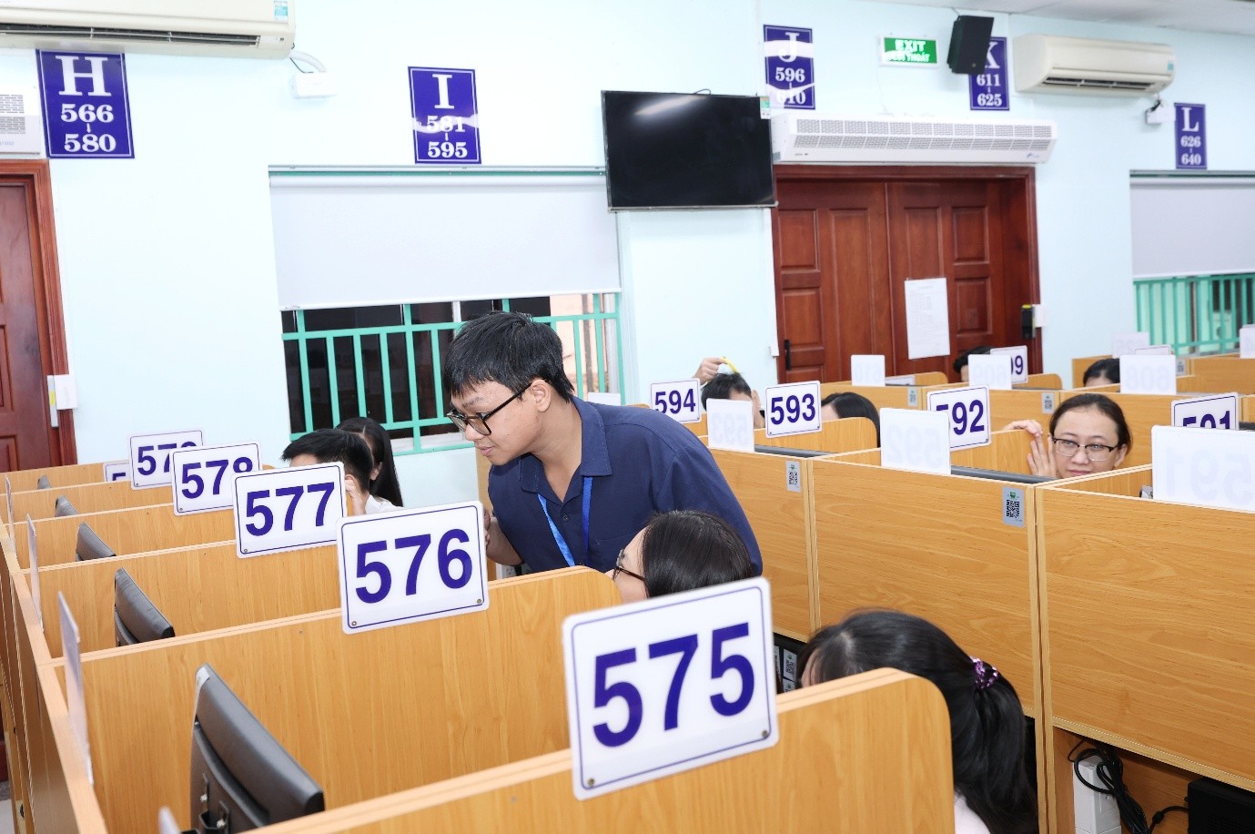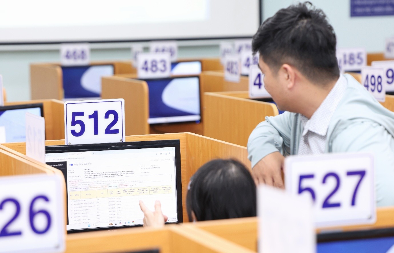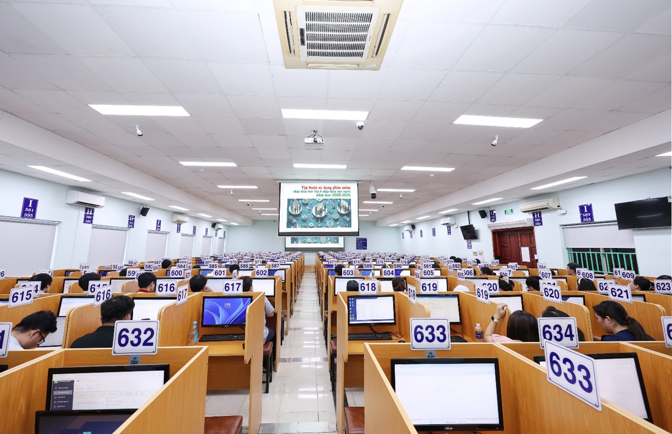 Buổi Tập huấn sử dụng phần mềm nhập điểm trực tiếp & trực tuyến được tổ chức tại Phòng máy tính - lầu 6 khu A2, Phòng Bảo đảm Chất lượng và Khảo thí. (Ảnh: VPT)