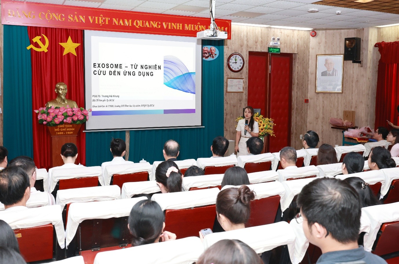 PGS.TS. Trương Hải Nhung trình bày chủ đề: Exosome - Từ nghiên cứu đến ứng dụng. (Ảnh: VPT)