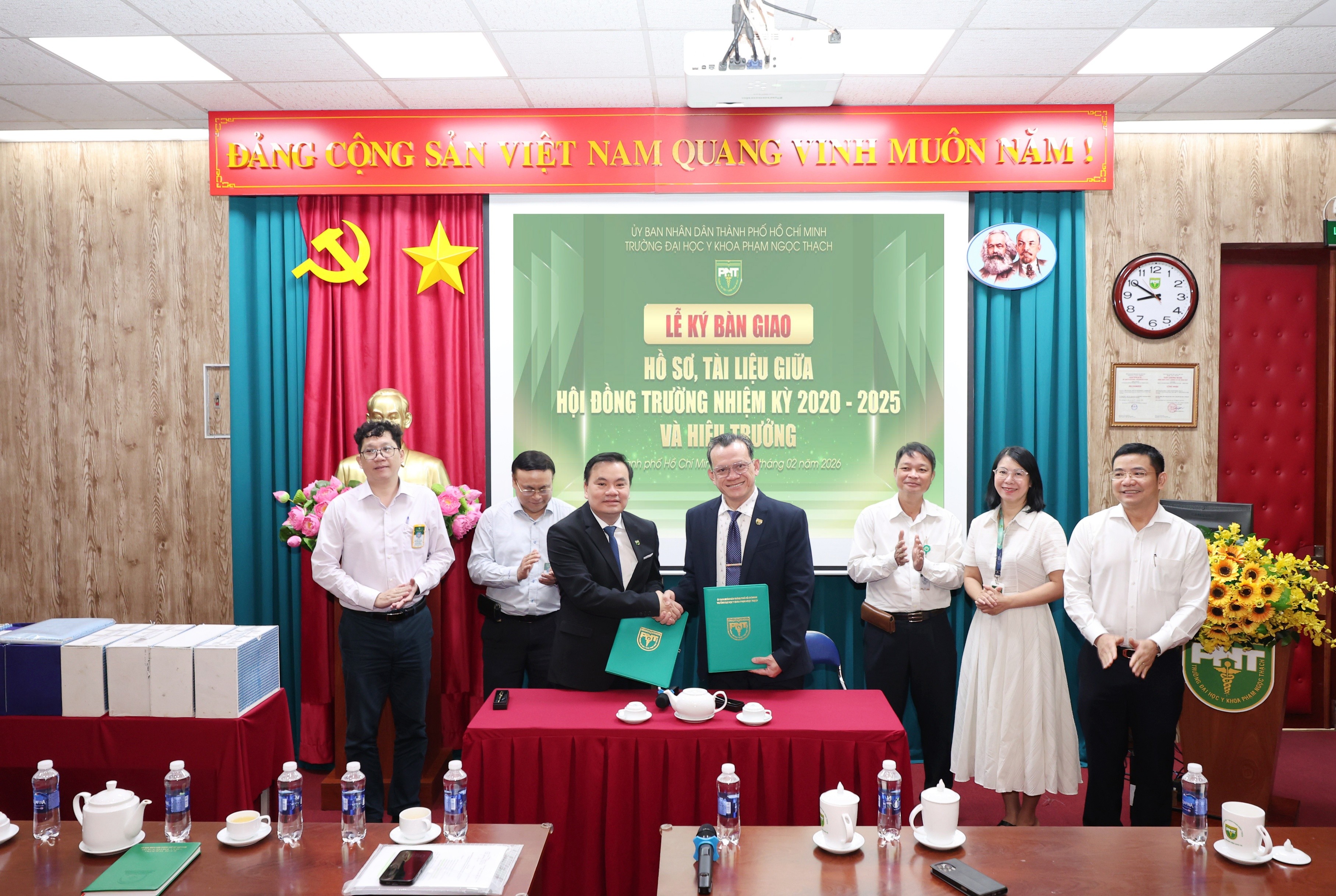 Thực hiện nghiêm túc tinh thần Nghị quyết 71-NQ/TW của Bộ Chính trị về đột phá phát triển giáo dục và đào tạo và Luật Giáo dục đại học số 125/2025/QH15, sáng ngày 12/02, Trường Đại học Y khoa Phạm Ngọc Thạch (PNTU) đã tổ chức trang trọng Lễ ký bàn giao hồ sơ, tài liệu giữa Hội đồng trường nhiệm kỳ 2020-2025 và Hiệu trưởng. Sự kiện đánh dấu việc hoàn thành sứ mệnh lịch sử của mô hình Hội đồng trường, chuyển sang giai đoạn quản trị mới tinh gọn và tập trung hơn.