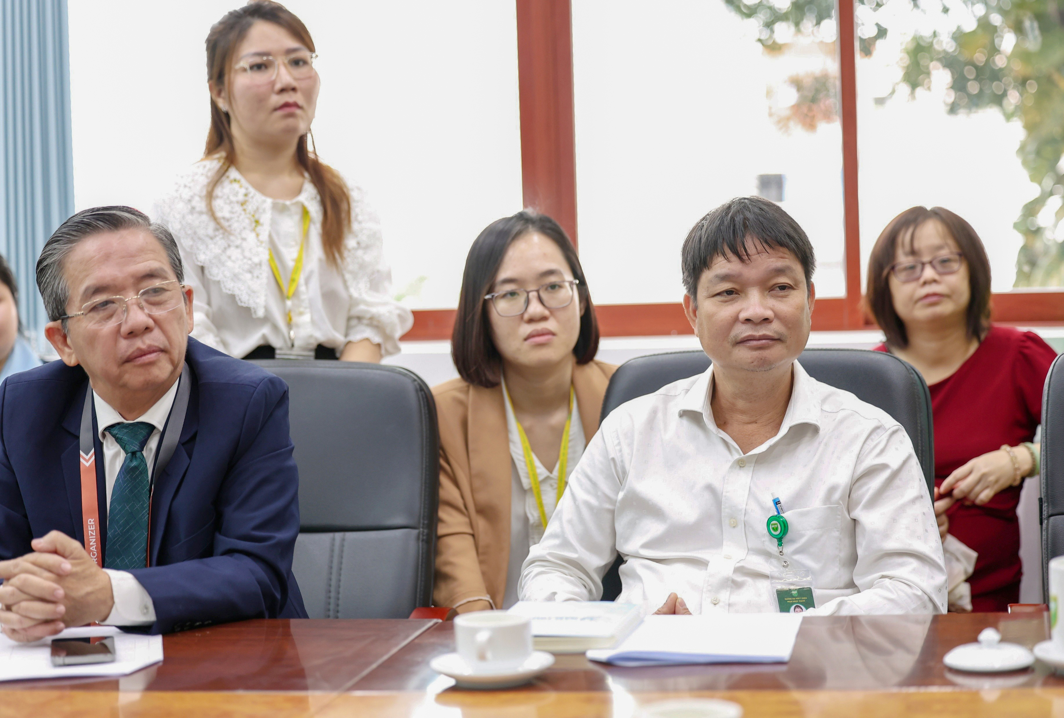 Về phía nhà trường, tham dự buổi làm việc có: PGS.TS.BS. Nguyễn Trọng Hào - Bí thư Đảng ủy, Chủ tịch Hội đồng Trường; TS.BSCKII. Phạm Quốc Dũng - Phó Hiệu trưởng; TS.BSCKII. Lê Trung Chánh - Giám đốc Bệnh viện Răng Hàm Mặt Trung Ương TP.HCM - Trưởng Khoa Răng Hàm Mặt của Trường; TS.BS. Nguyễn Ngọc Vân Phương - Trưởng phòng Hợp tác Quốc tế; cùng đại diện lãnh đạo các Khoa, Phòng của Trường.