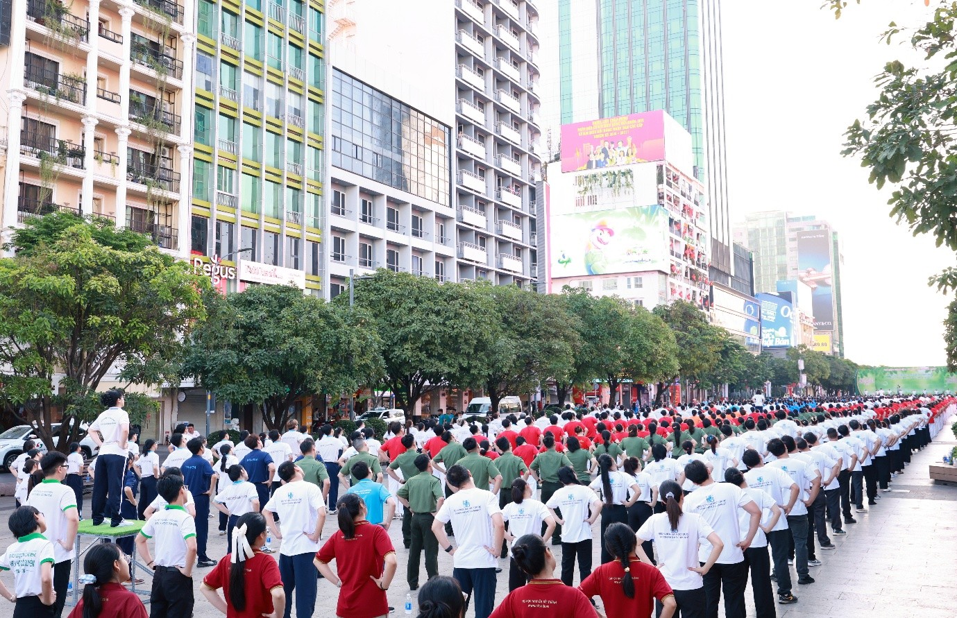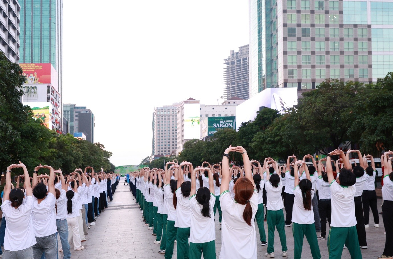 Buổi mít tinh đồng diễn dưỡng sinh hưởng ứng Ngày Sức khỏe toàn dân có sức thu hút và lan tỏa rộng rãi trong khắp các cơ quan, đơn vị, đoàn thể trên địa bàn TP. HCM tham dự. (Ảnh: VPT)