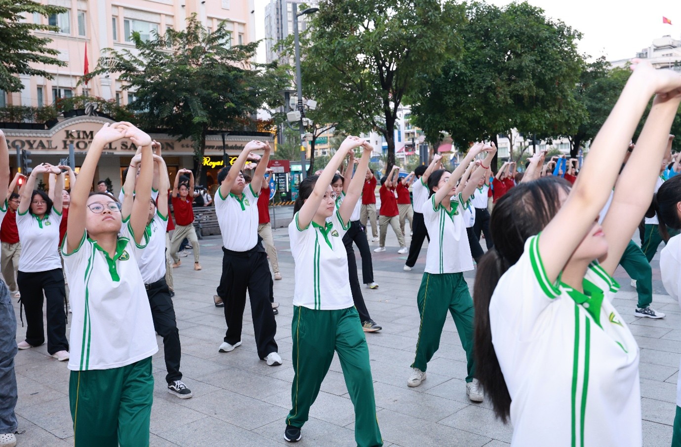 Màn đồng diễn Dưỡng sinh không chỉ gây ấn tượng bởi sự đồng đều, nhịp nhàng mà còn thể hiện rõ nét tính kỷ luật, sự chuẩn bị nghiêm túc và tinh thần đồng đội. Những chuyển động uyển chuyển mang theo hơi thở của y học cổ truyền, được thể hiện theo cách gần gũi, hiện đại, giúp truyền đi thông điệp sống khỏe, sống vui đến người dân toàn Thành phố.