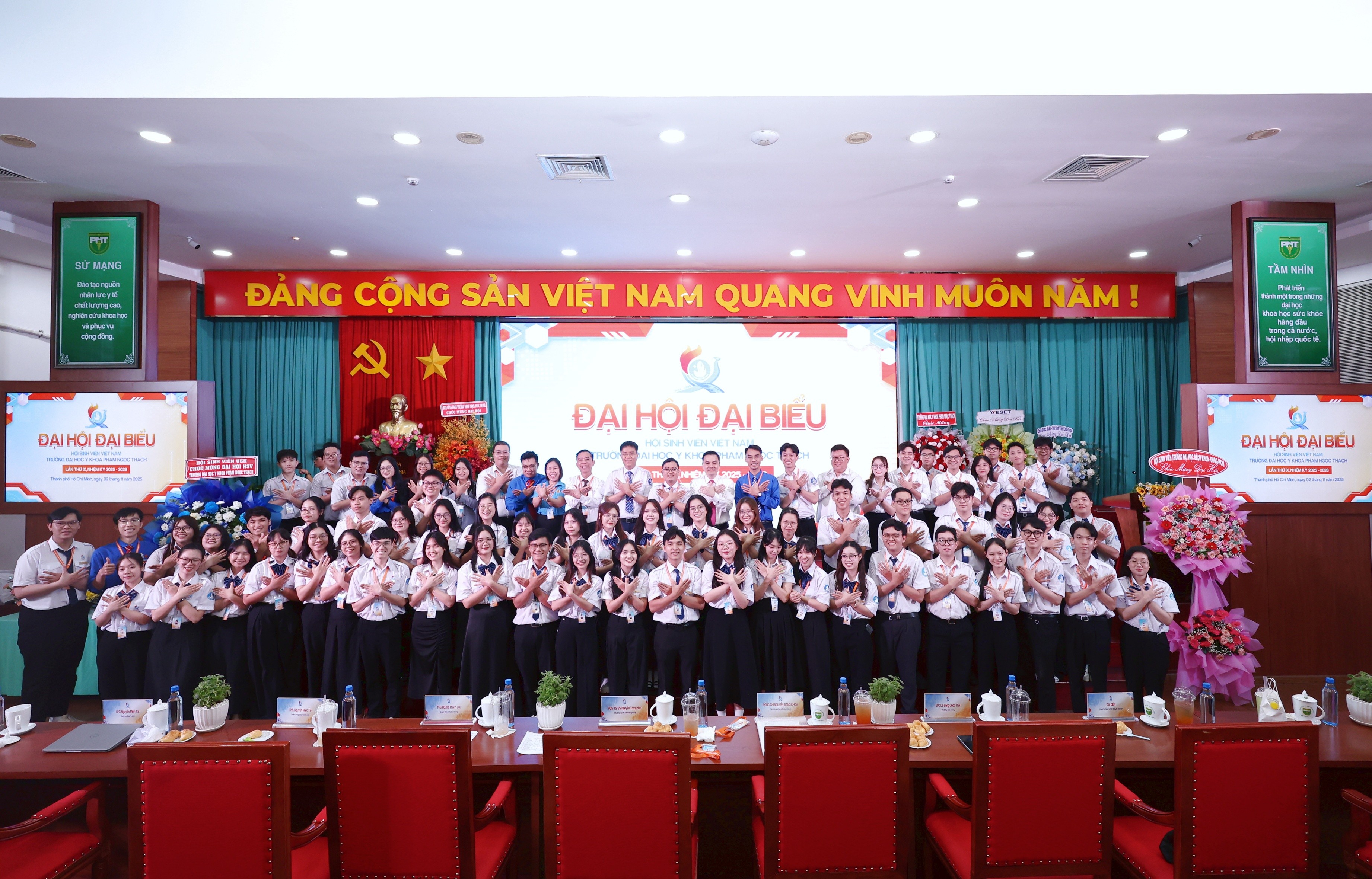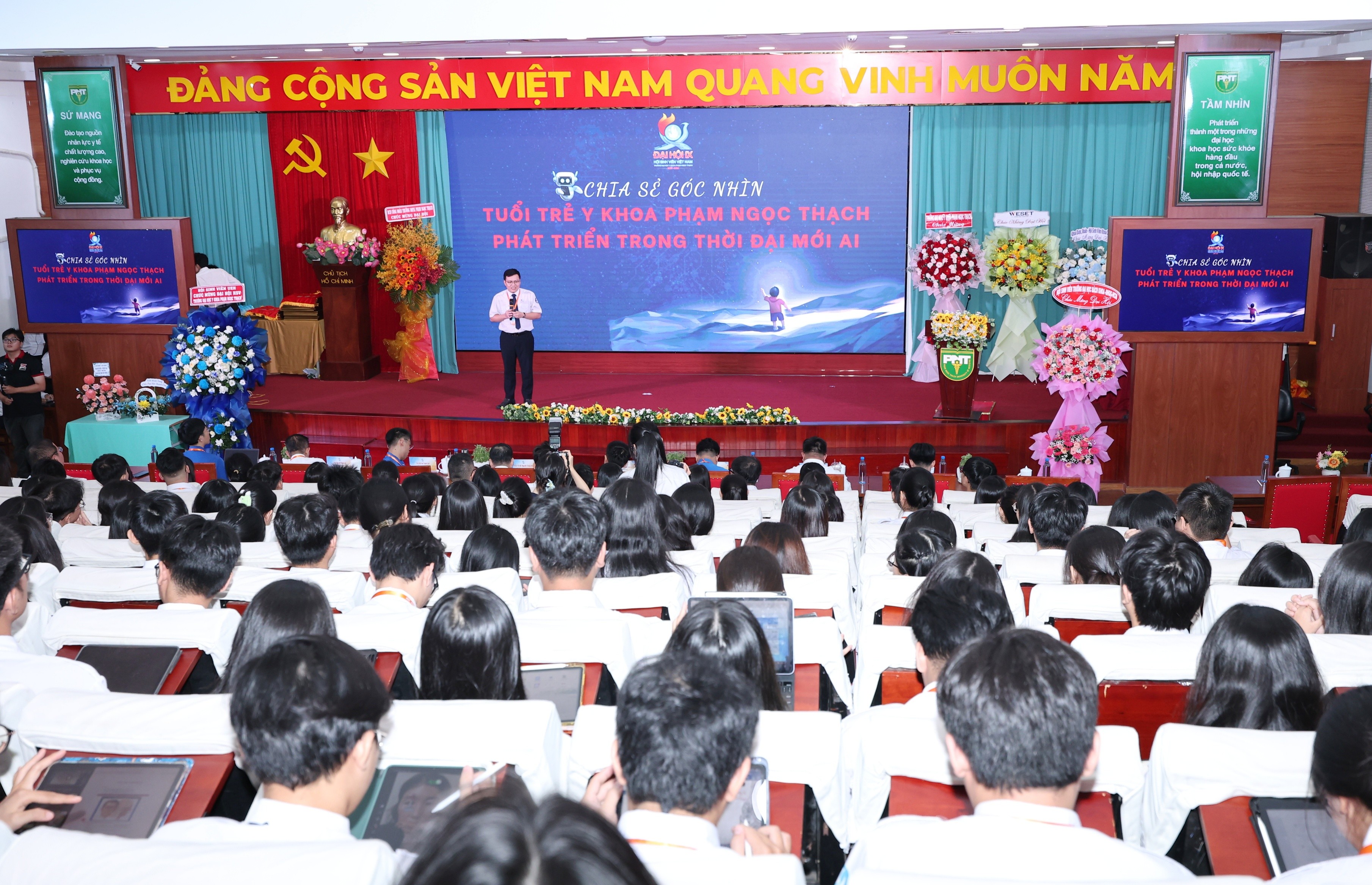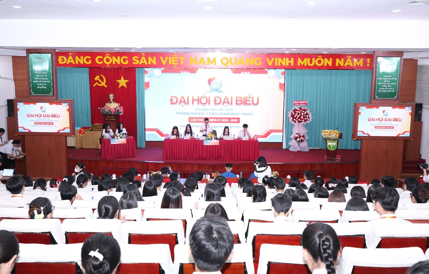 Đại hội Đại biểu Hội Sinh viên Trường Đại học Y khoa Phạm Ngọc Thạch lần thứ IX (nhiệm kỳ 2025-2028) diễn ra thành công tốt đẹp với tinh thần "Khát vọng - Đoàn kết - Hội nhập - Tiên phong" phát huy vai trò xung kích vì cộng đồng. (Ảnh VPT cung cấp)