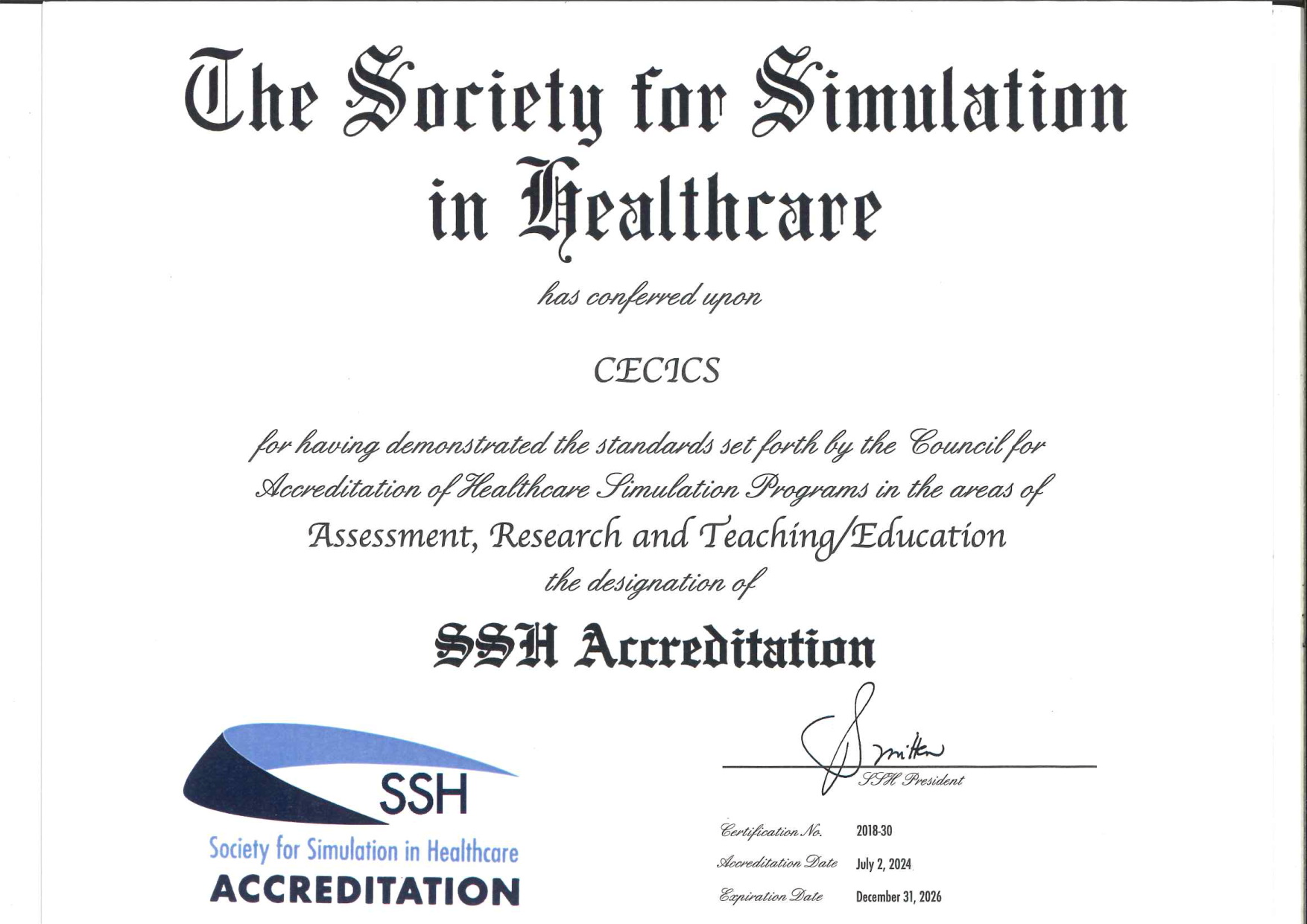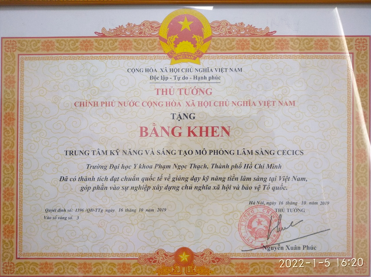 Thành quả ngọt ngào đã đến khi CECICS chính thức trở thành một trong hai trung tâm mô phỏng tại Đông Nam Á đạt Chứng nhận kiểm định toàn phần (Full Accreditation) từ Hội Mô phỏng lâm sàng quốc tế (SSH) vào tháng 12.2021, bao phủ cả 4 tiêu chuẩn: cốt lõi, giảng dạy, lượng giá và nghiên cứu. Đây không chỉ là một danh hiệu, mà là lời khẳng định mạnh mẽ về chất lượng đào tạo y khoa của Việt Nam trên bản đồ thế giới, được Thủ tướng Chính phủ ghi nhận bằng Bằng khen danh giá.