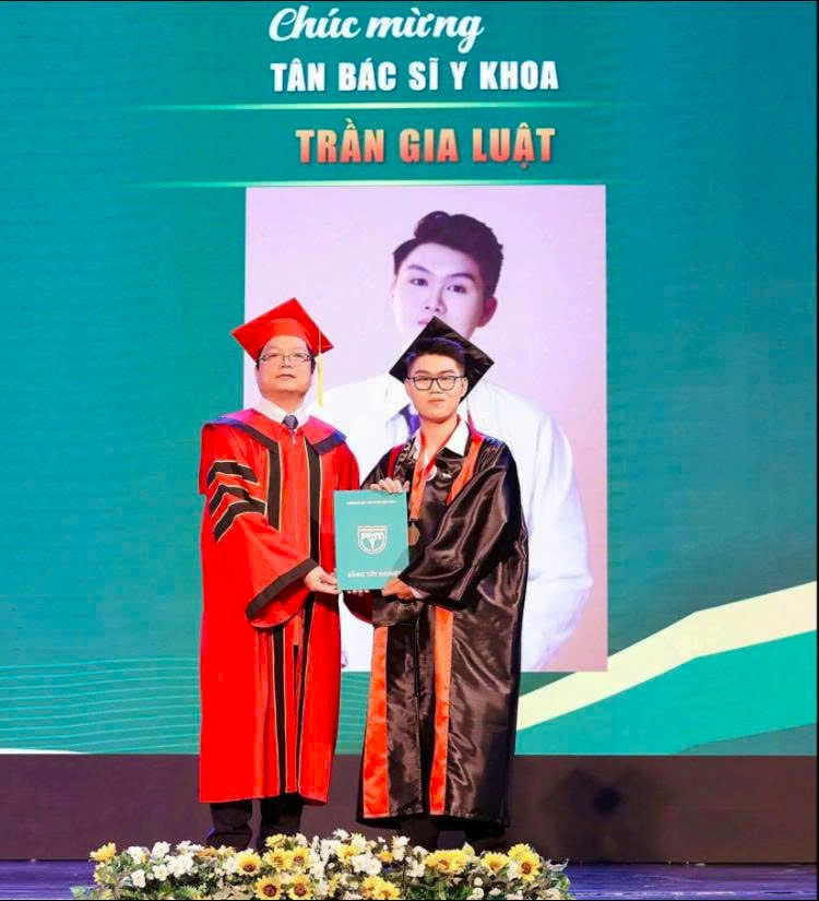 Trần Gia Luật nhận bằng y khoa trong Lễ Tốt nghiệp Đại học năm 2025 Trường Đại học Y khoa Phạm Ngọc Thạch (Ảnh: NVCC)