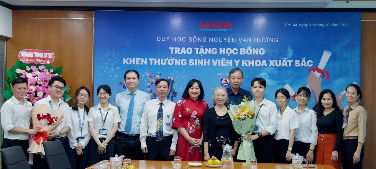 Sáng thứ ba ngày 31/10/2023, tại trụ sở Báo Sài Gòn Giải Phóng, Hội đồng quản lý Quỹ học bổng Nguyễn Văn Hưởng đã tổ chức trao khen thưởng cho 06 sinh viên xuất sắc nhất năm học 2022 - 2023 của Trường Đại học Y khoa Phạm Ngọc Thạch và Đại học Y Dược TP.HCM, với tổng giá trị học bổng là 200 triệu đồng.